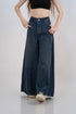 Palazzo Jean de cuatro bolsillos en denim rígido. Modelo ceñido en la cintura y con caída holgada a partir de las rodillas hasta terminar en bota acampanada. Talle normal en la cintura y muslos para un ajuste cómodo. Cierre con botón y ligero lavado.